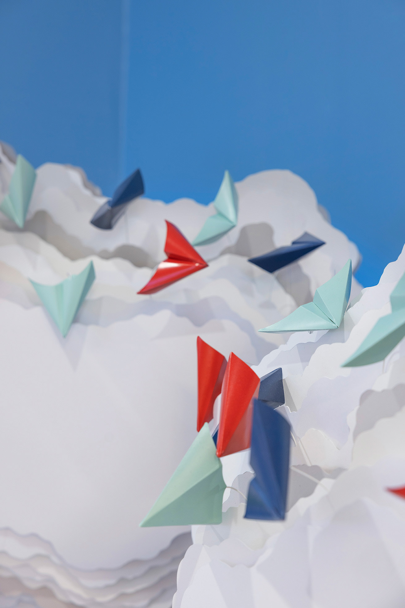 At this occasion, I was very honored to create this collaborative paper installation with Brussels Airport Company for their new office space. The result: three large paper clouds from 70 to 180 cm wide, hosting a series of folded kites, rising together like a danse in the wind... and an enchanting sensation of travelling to new destinations, while working on this beautiful project.